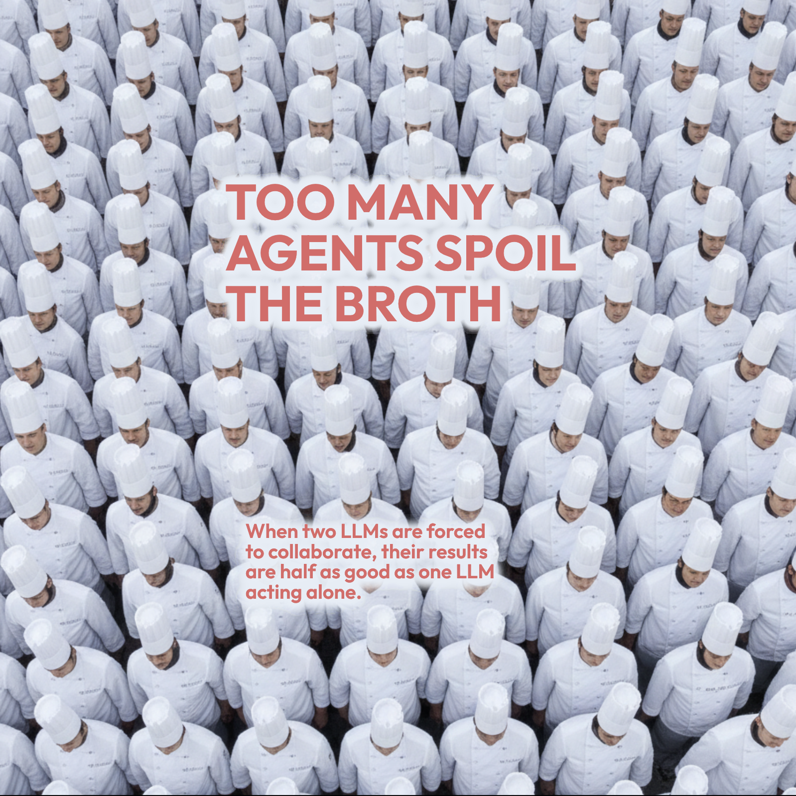 Agents spent up to 20% of their total budget just on communication. All that talking reduced merge conflicts but didn't improve success rates. The channel was jammed with repetition, vagueness, and hallucinated status updates.